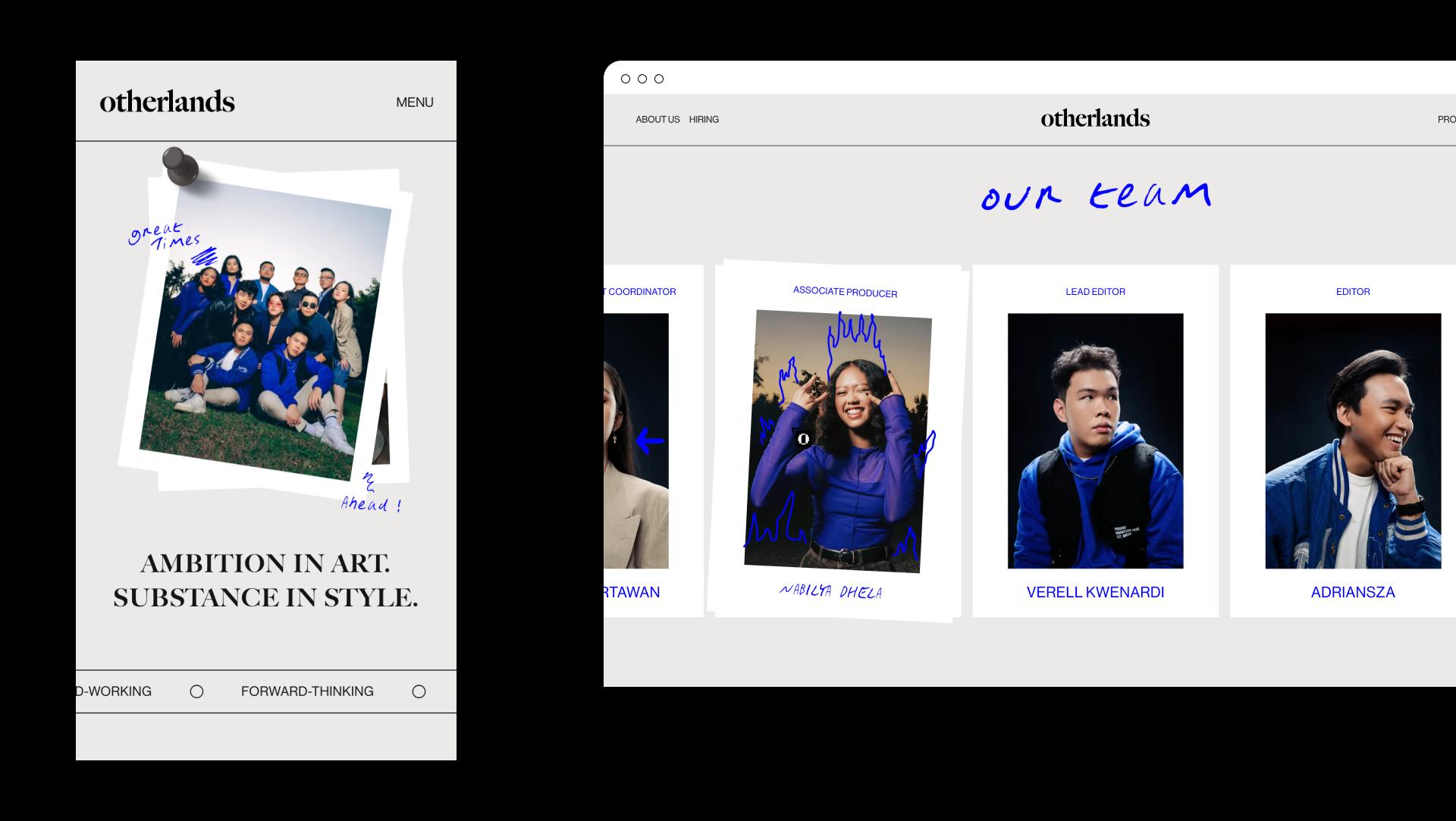 Otherlands is a boutique production company servicing fellow creatives in the arts and entertainment industry. Otherlands stands for substance in style and ambition in art.
